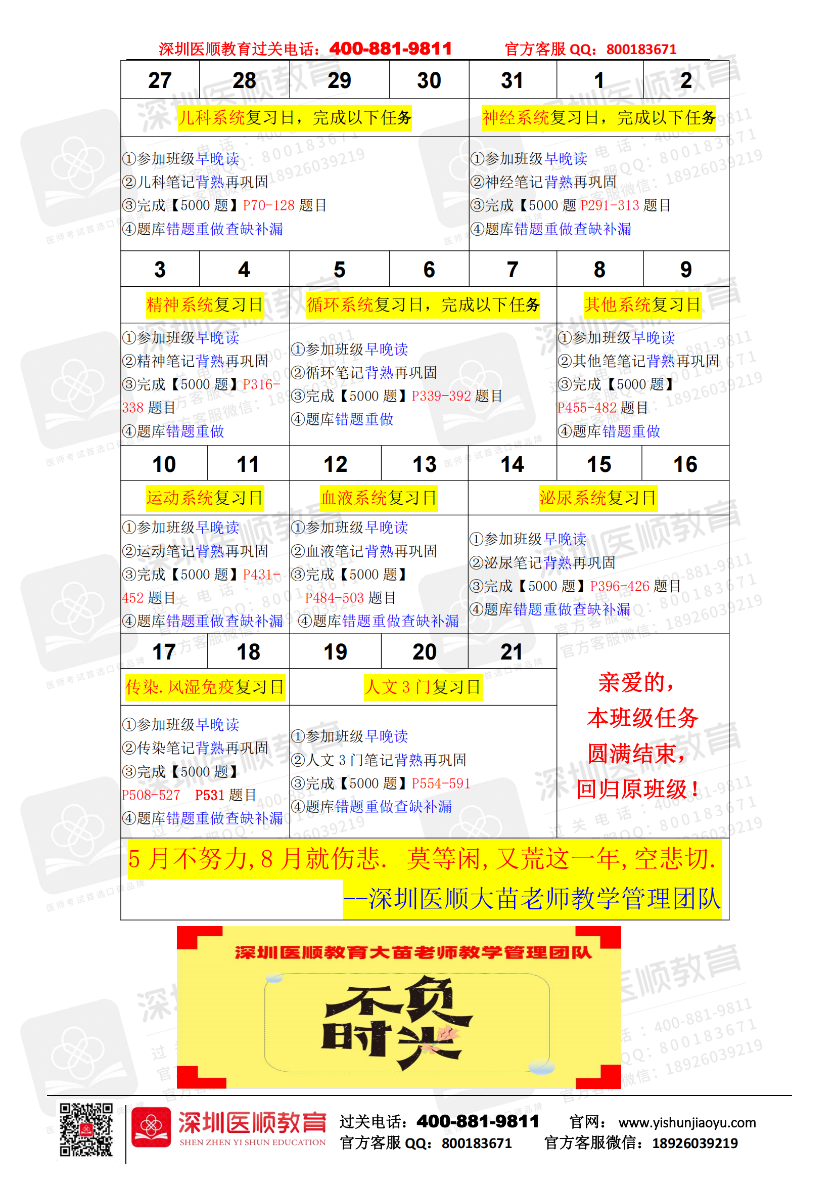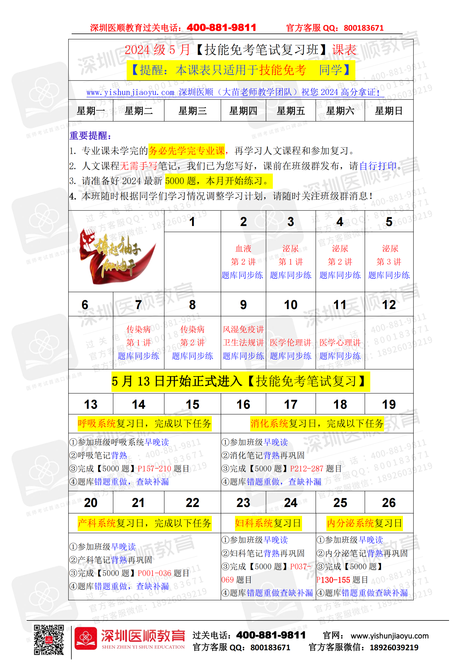 技能免考课表 | 深圳医顺大苗老师教学管理团队5月技能免考同学【专业复习】课表