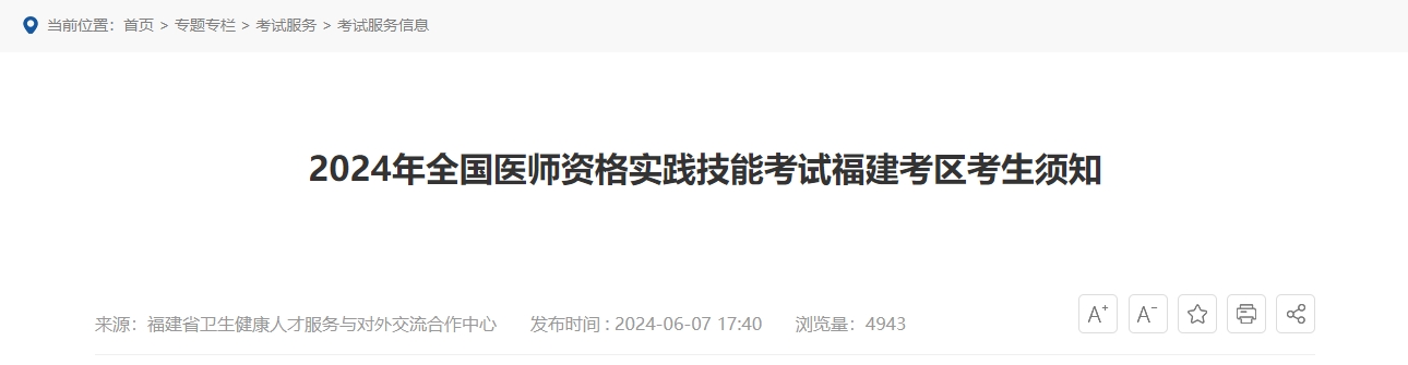 福建省卫生健康人才服务与对外交流合作中心发布关于2024年全国医师资格实践技能考试福建考区考生须知,实践技能考试福建考区考试将于6月15-25日举行,考生准考证打印时间为6月7日-25日。通知详情如下: