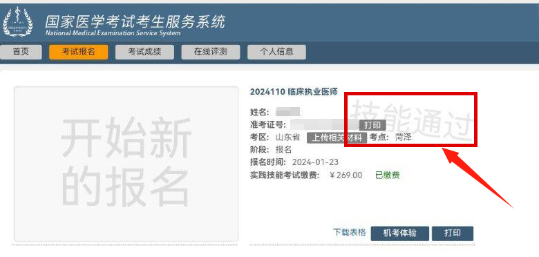 (国家医学考试网报名系统技能成绩展示图)