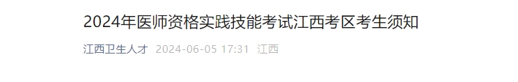 江西卫生健康委员会发布关于2024年医师资格实践技能考试江西考区考生须知,通知详情如下: