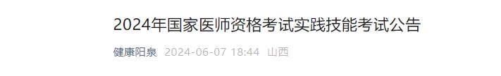 山西省2024年医师资格医学综合笔试缴费时间为7月5日-11日