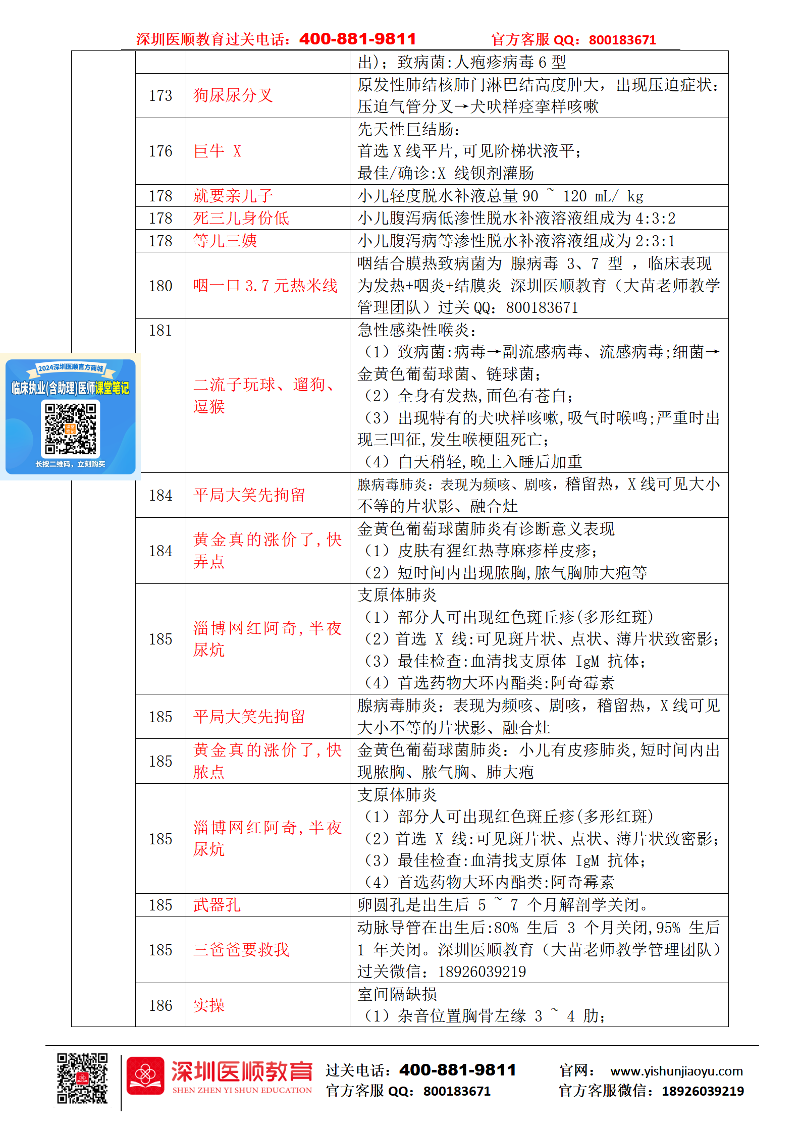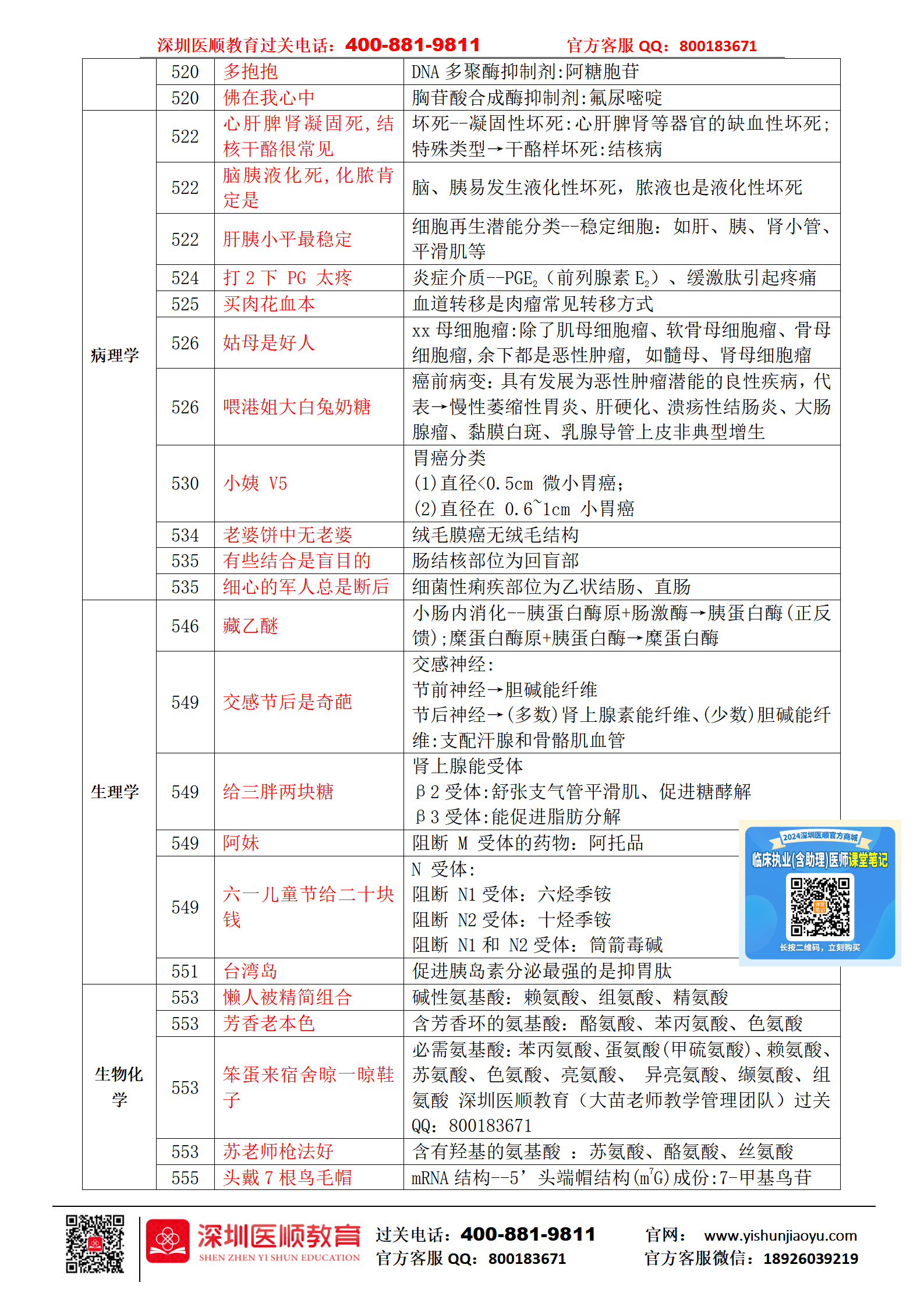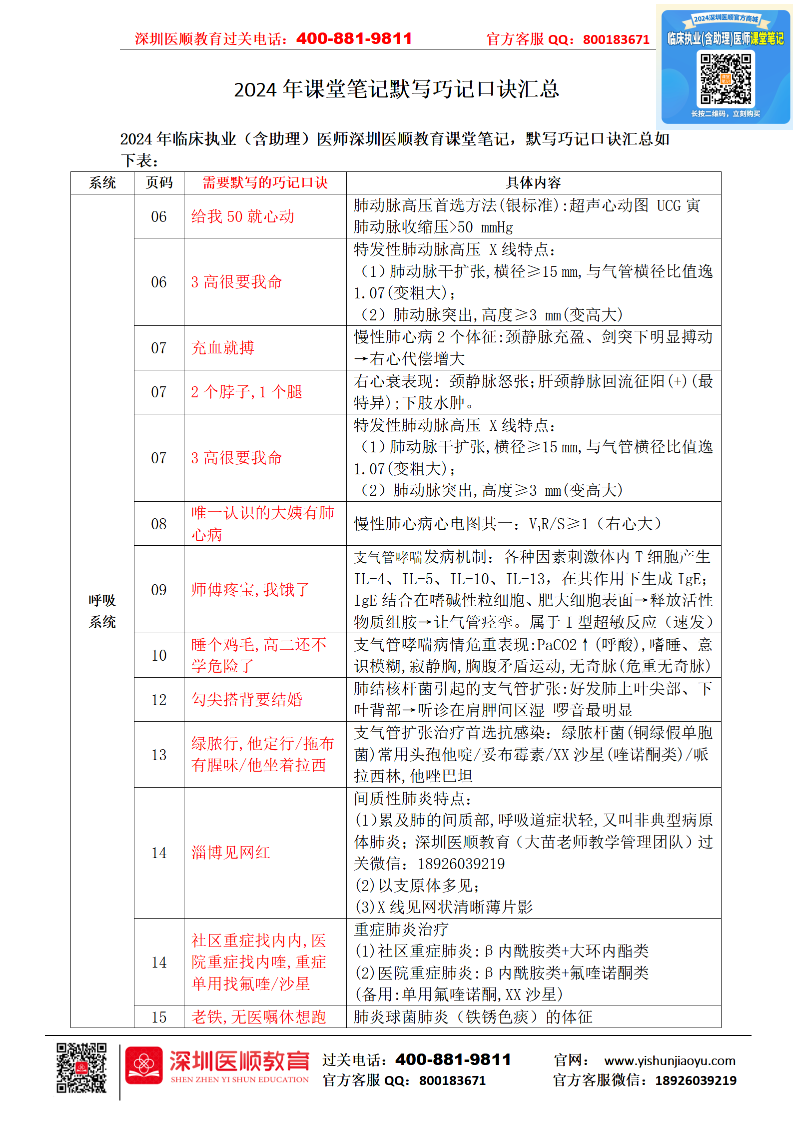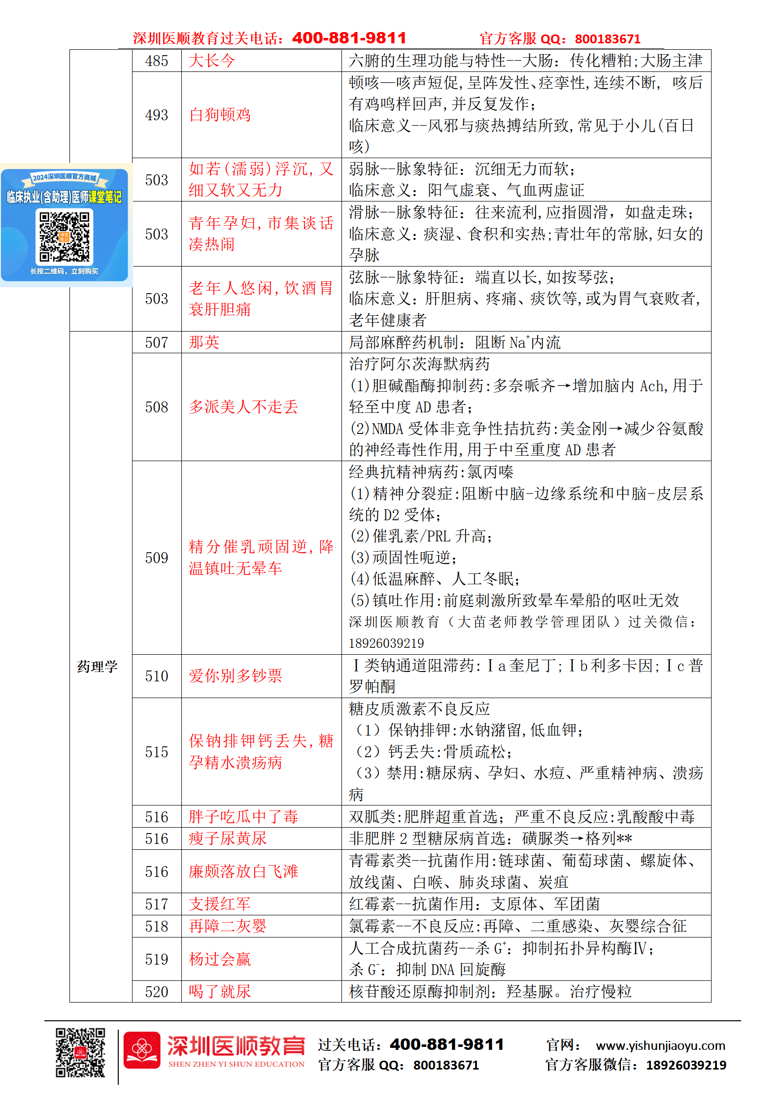 2024版深圳医顺教育课堂笔记用书勘误汇总表、默写巧记口诀完整答案
