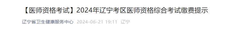 辽宁省卫生健康服务中心发布关于2024年辽宁考区医师资格综合考试缴费提示,医师资格综合笔试缴费时间为技能成绩公布后10天内开通缴费功能,通知详情如下: