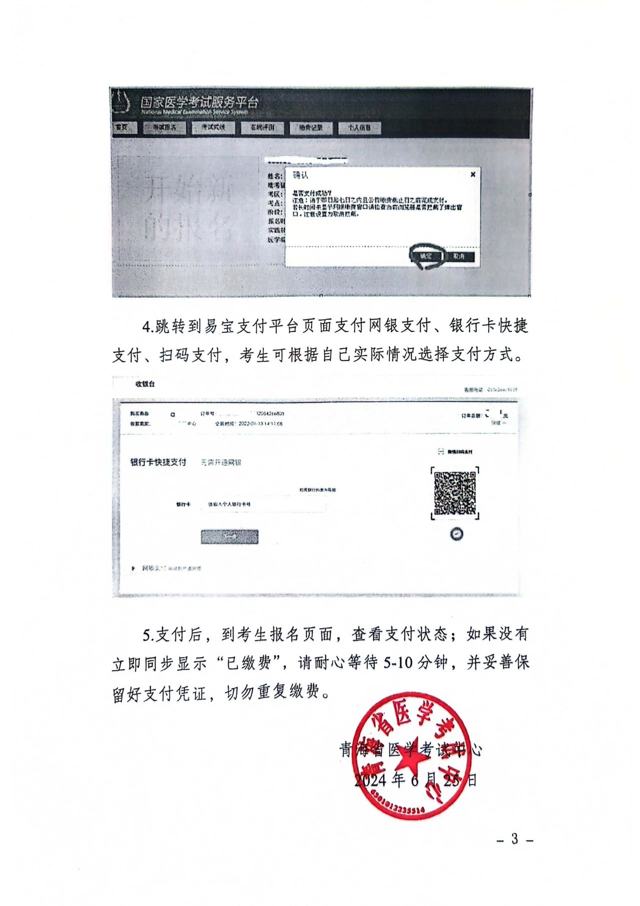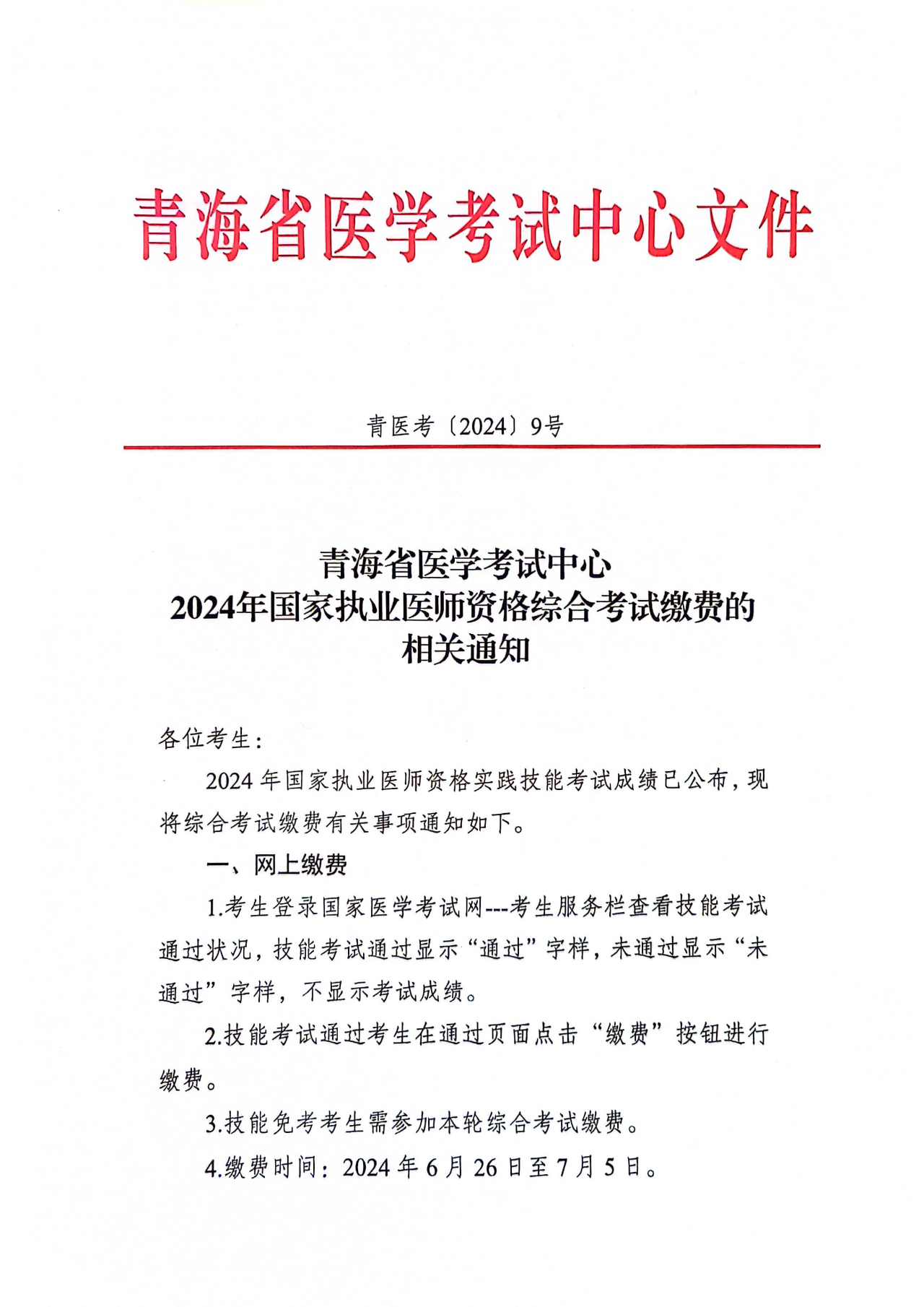 青海省2024年国家执业医师资格综合考试缴费的相关通知