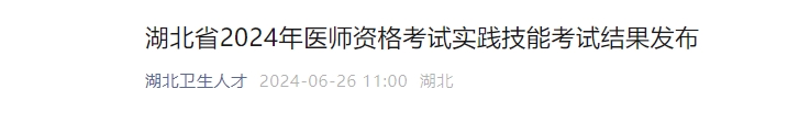 湖北省2024年医师资格实践技能考试结果发布的通知