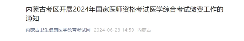 内蒙古考区2024年医师资格医学综合考试缴费工作的通知
