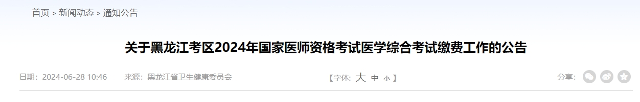 黑龙江考区2024年医师资格医学综合考试缴费工作的公告