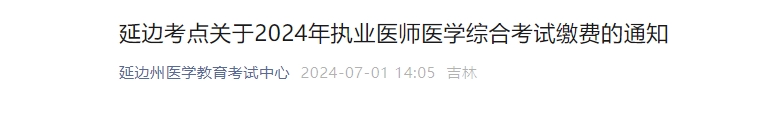 吉林延边考点关于2024年执业医师医学综合考试缴费的通知