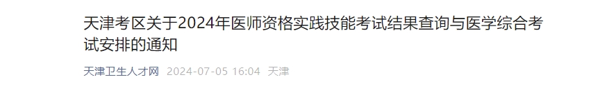 天津考区2024年医师资格技能考试结果查询与医学综合考试安排的通知