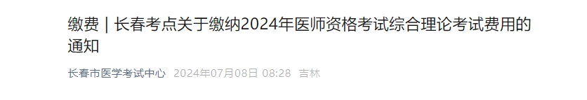 长春考点关于缴纳2024年医师资格综合理论考试费用的通知