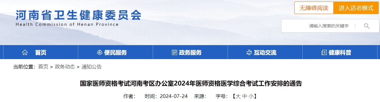 河南考区2024年医师资格医学综合考试工作安排的通告