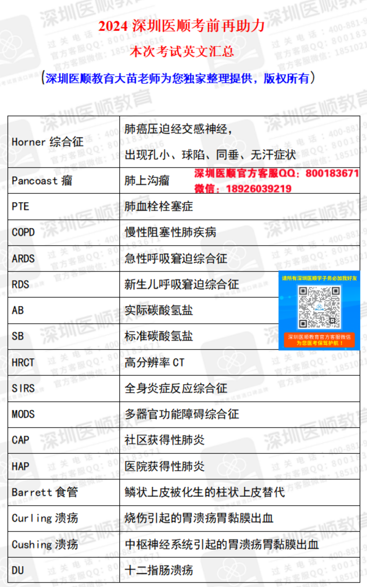 考前再助力—2024年临床医师笔试英文全汇总