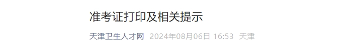 天津考区医师资格考试委员会办公室关于天津考区2024年度医师资格考试医学综合考试准考证打印及相关提示的通知,医学综合考试准考证打印时间:8月7日至8月15日,通知详情如下: