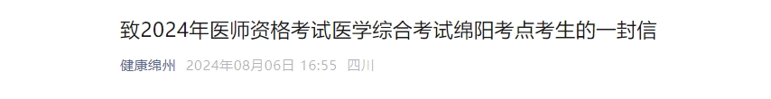 四川省绵阳市卫生健康委员会发布关于《致2024年医师资格考试医学综合考试绵阳考点考生的一封信》,详情内容如下: