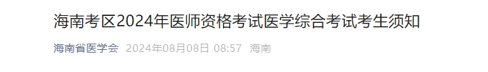 医师资格考试海南考区海口考点办公室发布了《海南考区2024年医师资格考试医学综合考试考生须知》,据通知可知海南考区考生可于8月6日起打印准考证,通知详情如下: