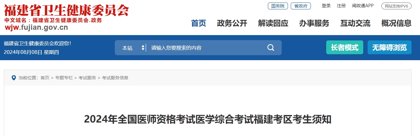 2024年全国医师资格考试医学综合考试将于8月16日-18日举行。为做好福建考区考试工作,现将有关事项公告如下,请各位考生知悉。