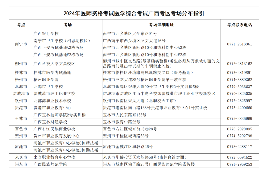 广西考区2024年医师资格考试医学综合考试考前温馨提示