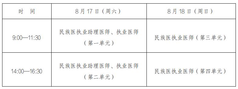 (二)民族医纸笔考试时间安排