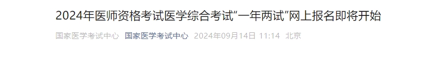国家医学考试中心发布关于2024年医师资格考试医学综合考试“一年两试”网上报名即将开始的通知,“一年两试”网上报名及缴费时间从9月18日至9月24日。通知详情如下: