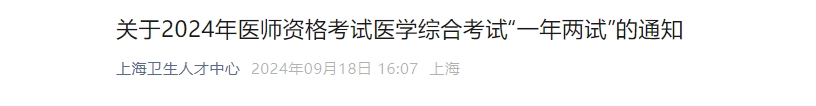 上海考区2024年医师资格医学综合考试“一年两试”的通知