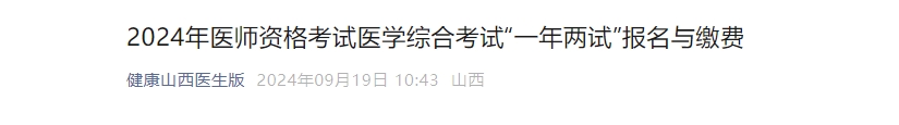 山西考区2024年医师资格医学综合考试“一年两试”报名与缴费通知