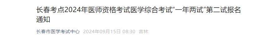 吉林长春市医学考试中心发布关于长春考点2024年医师资格考试医学综合考试“一年两试”第二试报名通知,通知详情如下: