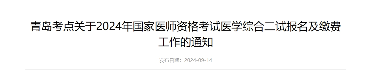 青岛考点2024年医师资格考试二试报名及缴费工作的通知