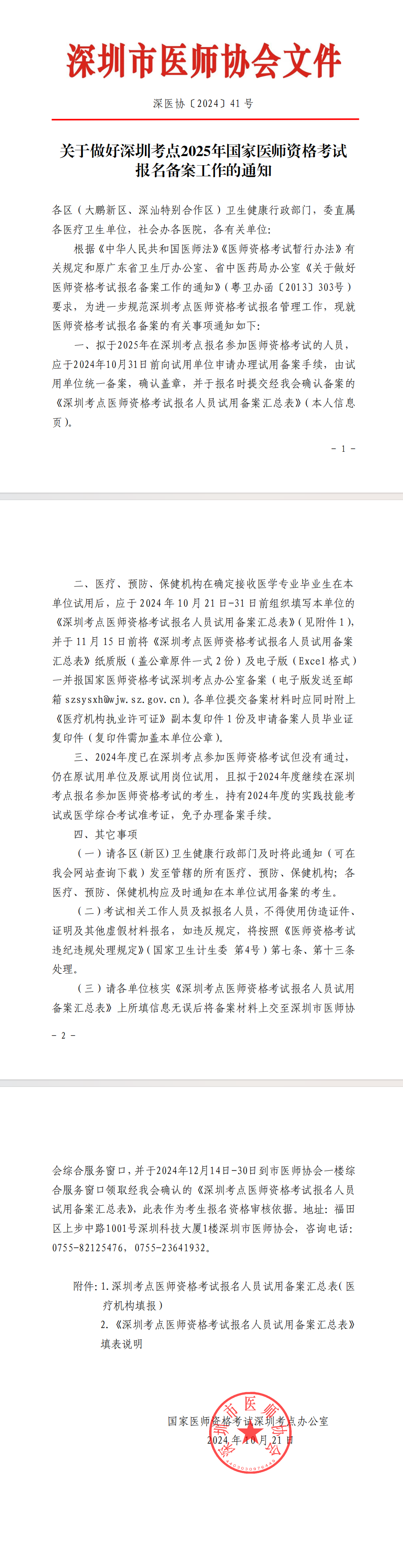深圳考点2025年国家医师资格考试报名备案工作的通知