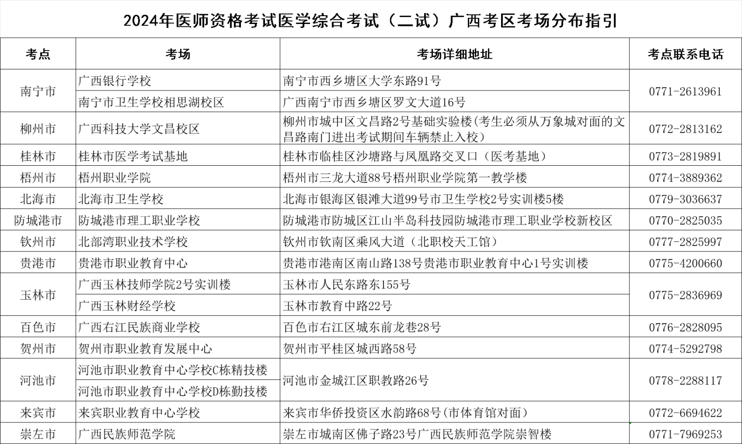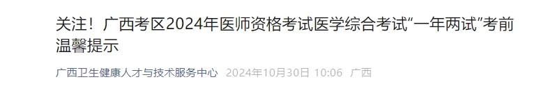 广西考区2024年医师资格医学综合考试“一年两试”考前温馨提示