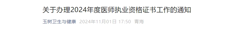 青海省玉树州关于办理2024年度医师执业资格证书工作的通知