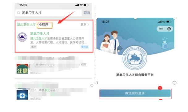 进入微信小程序搜索"湖北卫生人才"以下简称综合服务平台,选择进入系统。