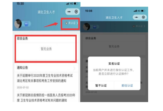 首次登录进入综合服务平台,会提示用户进行实名认证,点击“前往认证”进行实名认证。