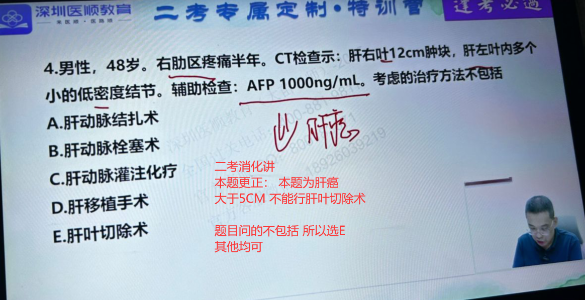 本题更正: 本题为肝癌大于5CM 不能行肝叶切除术 题目问的不包括所以选E其他均可