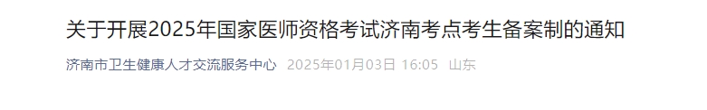 山东济南市卫生健康人才交流服务中心发布关于开展2025年国家医师资格考试济南考点考生备案制的通知,通知详情如下: