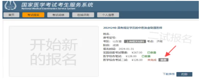 注意:请考生及时关注国家医学考试网考生服务端,在缴费结束后注意出现“已缴费”绿色字样即为成功。如出现缴费意外情况请及时联系工作人员。对于网上缴费未成功的考生,视为放弃报名,不能参加医师资格考试“一年两试试点工作。缴费后因个人原因无法参加考试的考生一律不予退费。
