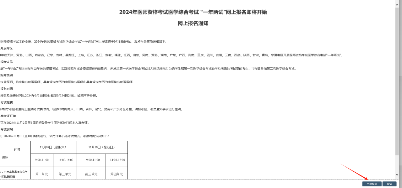 3.点击”二试说明“查看具体报名通知,点击通知右下角”二试报名”按钮完成报名。4.确认报名后,会跳转到报名页面。