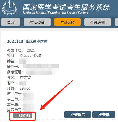 2.能看到成绩后,如果考生符合参加二试规则,就会看到”二试说明“按钮。