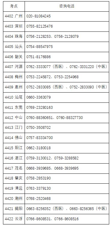 ▲各考点咨询电话: