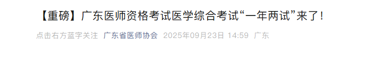 广东省卫生健康委员会发布关于广东医师资格考试医学综合考试“一年两试”来了!,通知详情如下:
