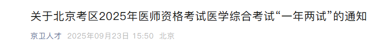 北京考区2025年医师资格医学综合考试“一年两试”的通知