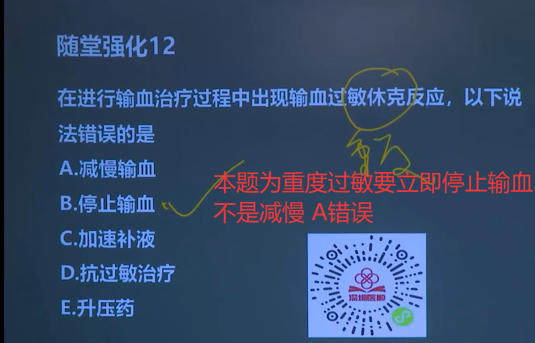 正确为:本题为重度过敏要立即停止输血,不是减慢 A错误