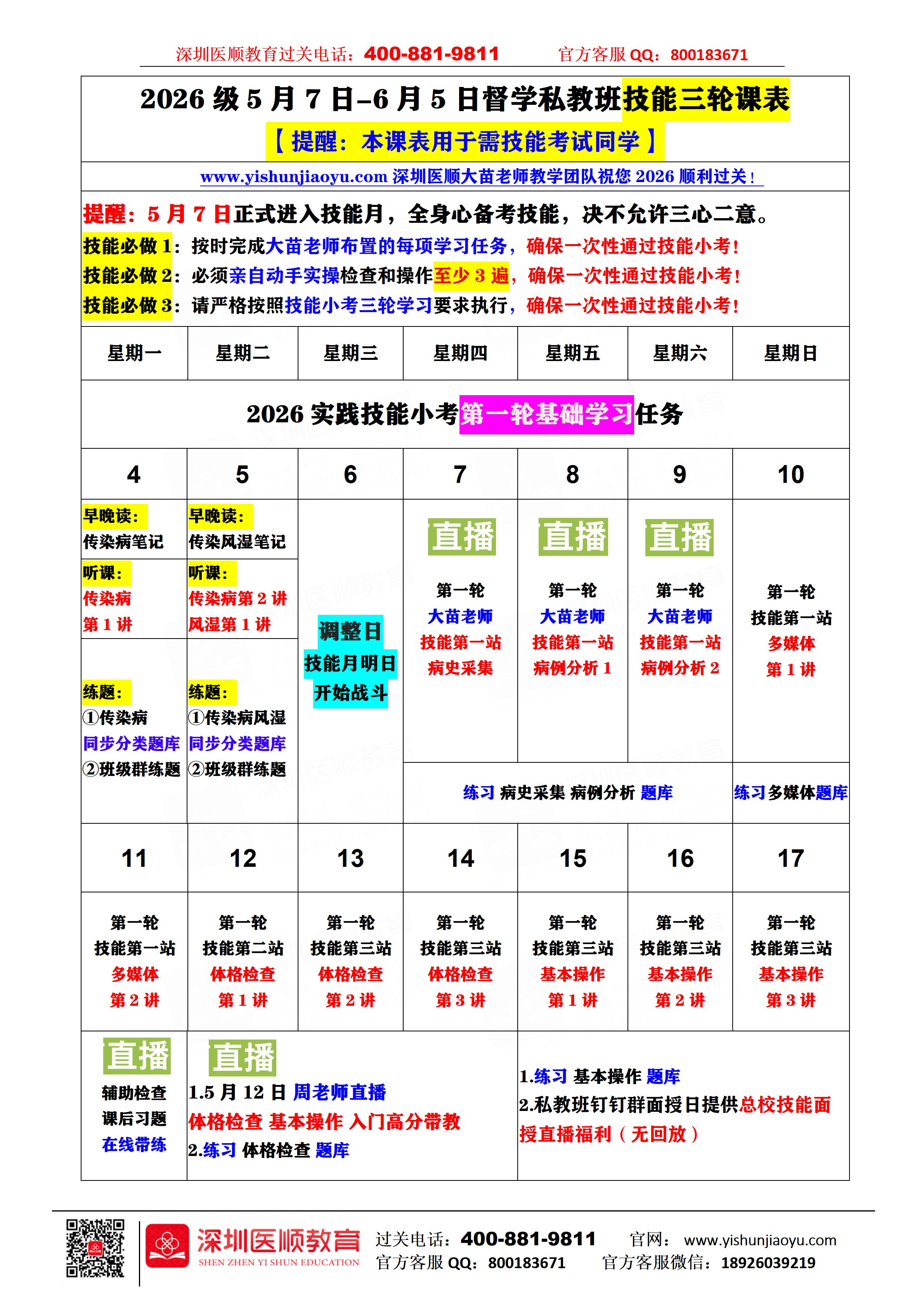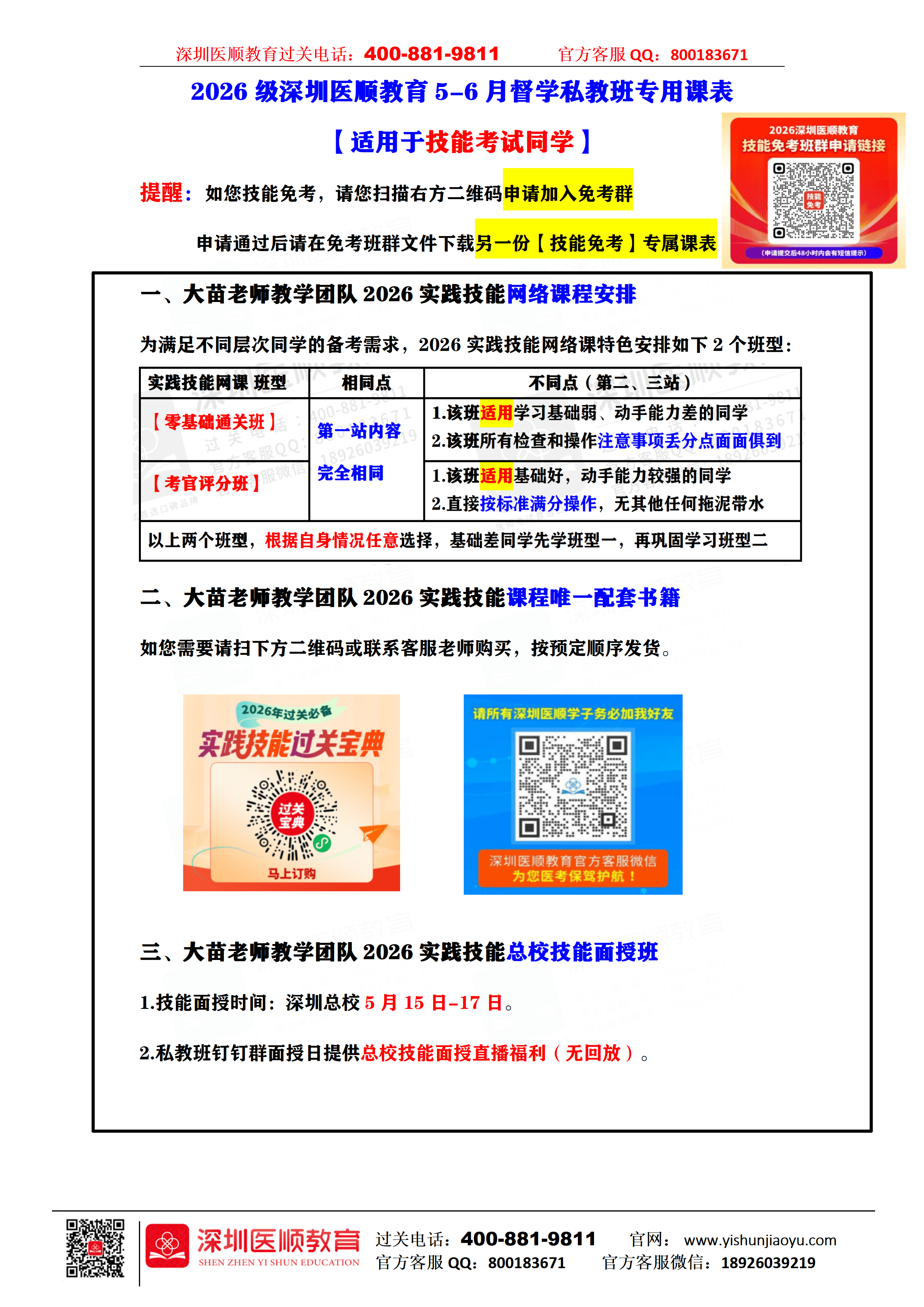 提醒:如您技能免考,请您扫描下方二维码申请加入免考群。申请通过后请在免考班群文件下载另一份【技能免考】专属课表